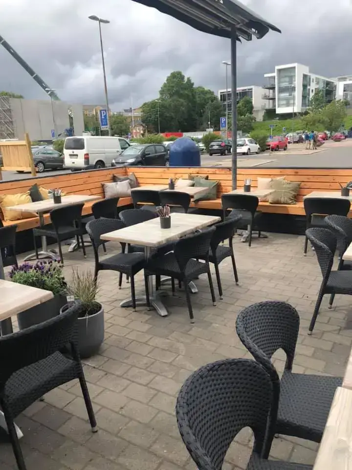 Vores hyggelige terrasse er åben i sommerhalvåret – perfekt til frokost, kaffe eller middag i det fri.